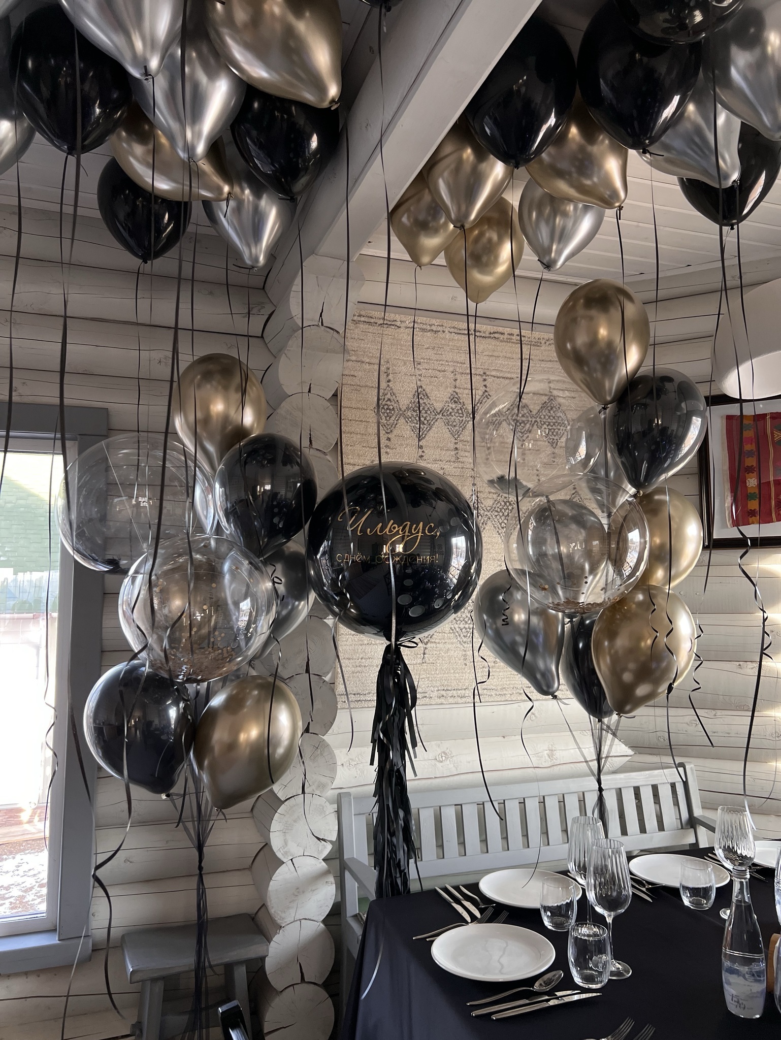 Шар Кристальный гигант с индивидуальной надписью и бахромой - 1 шт