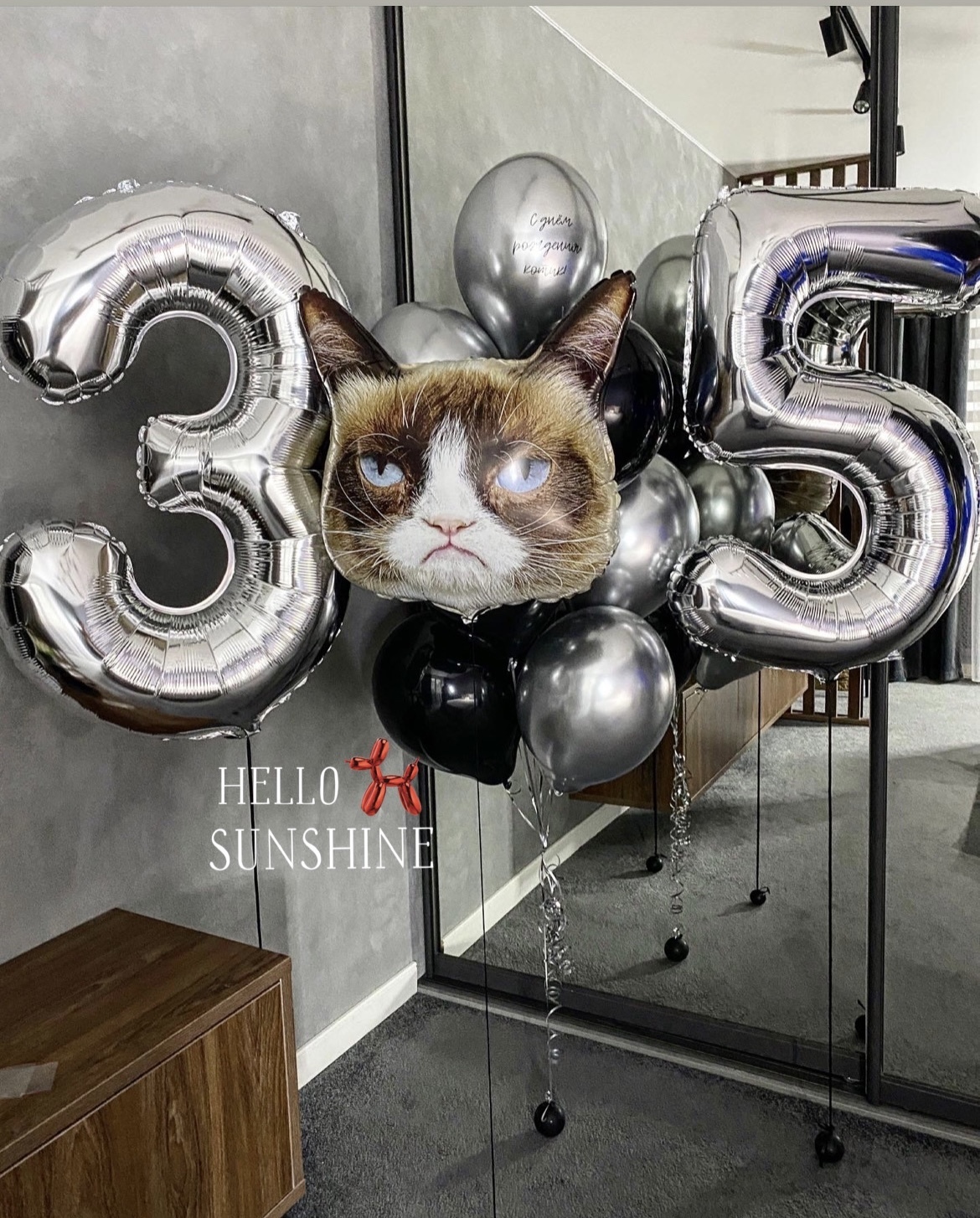 #деньрождения #мужу #коллеге #сыну #брату #цифры #подростку #черный #грустныйкот #размермакси #серебро #шаргигант