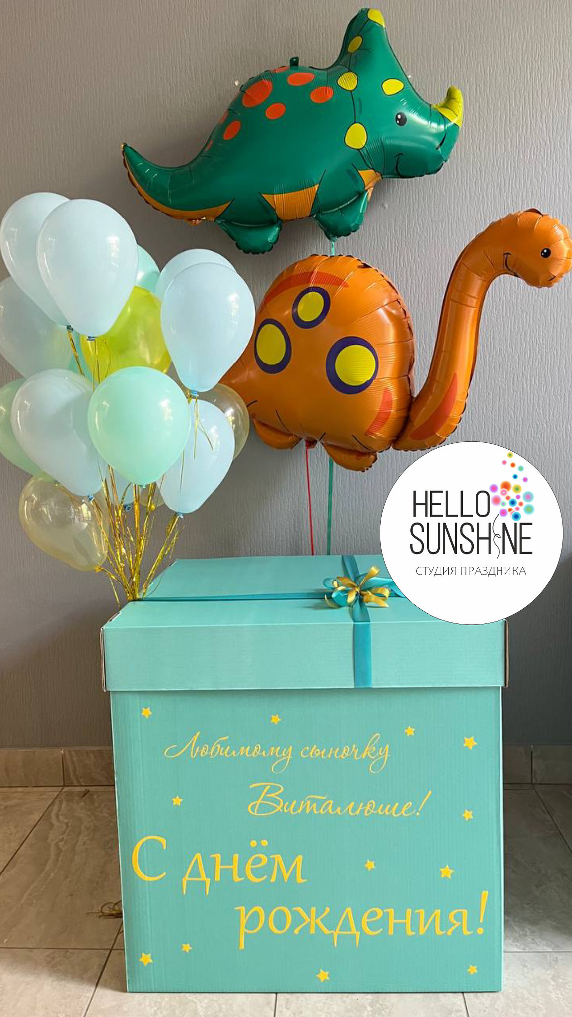 #сыну #брату #мальчик #динозавр #коробкасюрприз #фигуры #надписьнакоробке #минишары #мультфильмы #оранжевый #деньрождение #размермедиум #бирюзовый