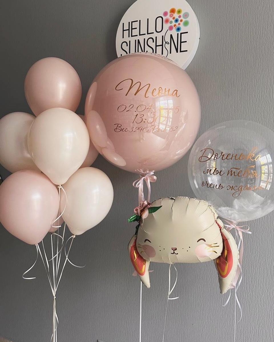 Прозрачный шар баблс с перьями и индивидуальной надписью - 1 шт