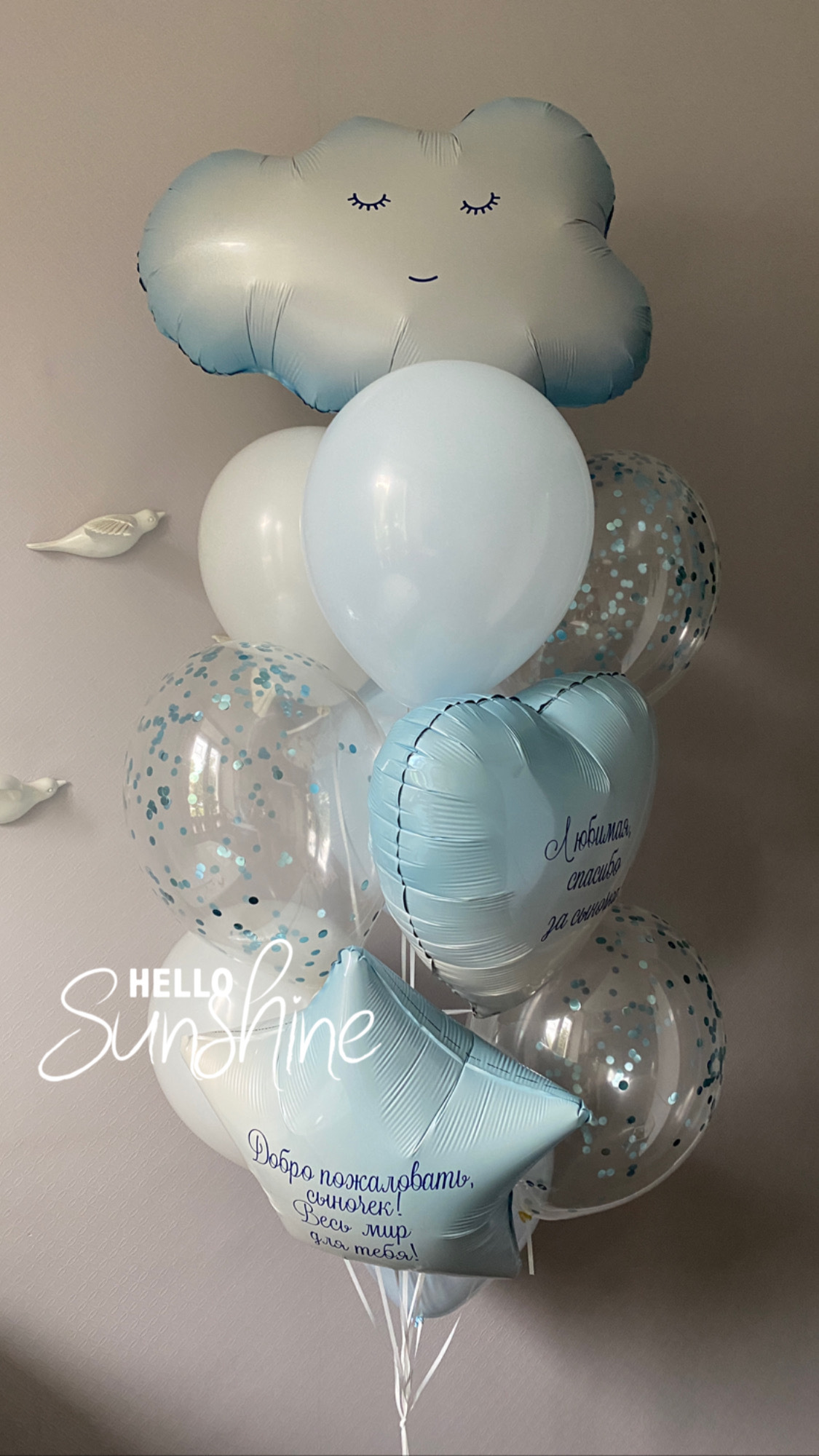 #выписка #выпискаизроддома #новорожденный #сыночек #сын #малыш #облако #шарысметрикой #мальчик #голубой #серебро #размермини