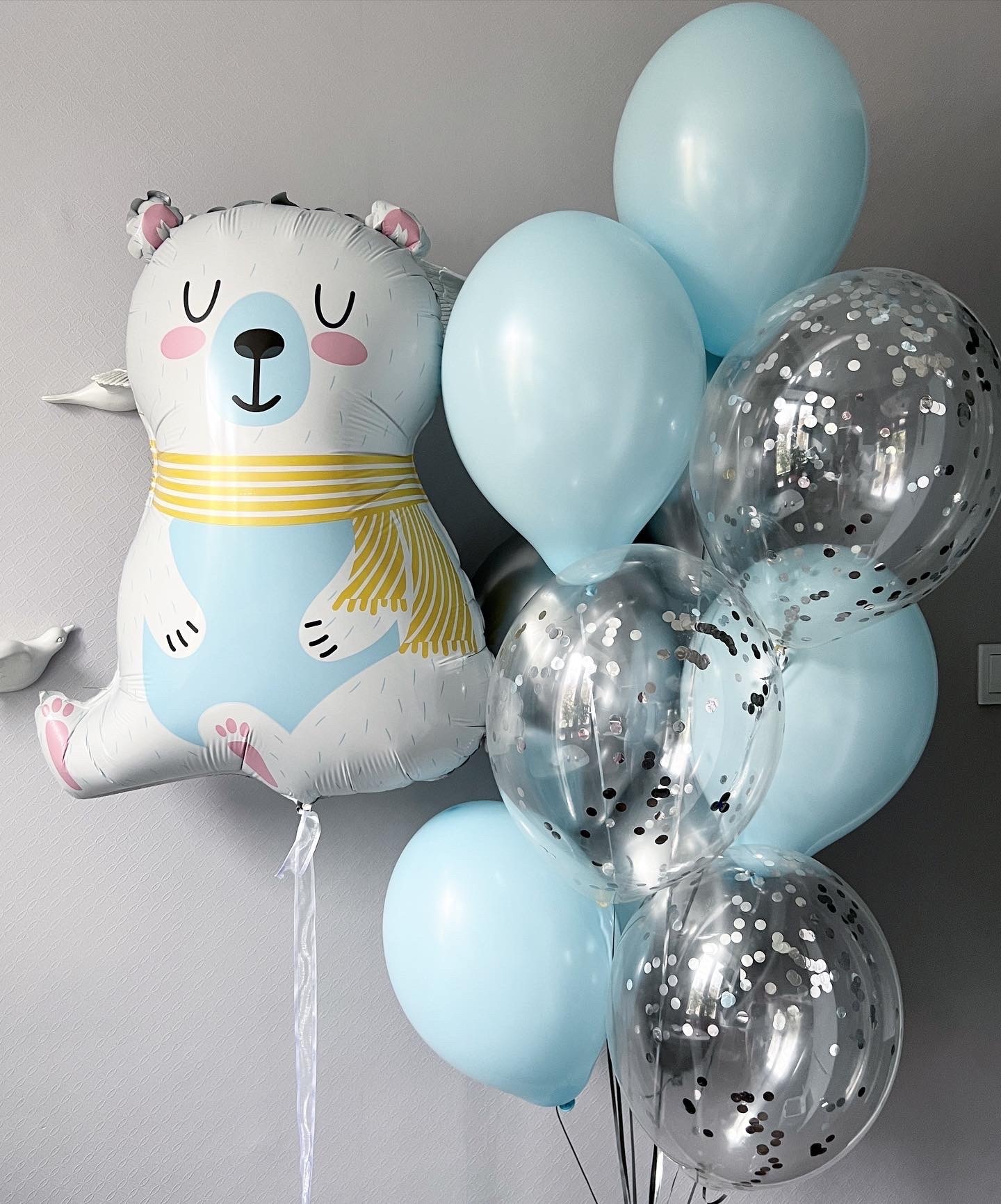 #выписка #выпискаизроддома #новорожденный #сыночек #сын #малыш #мишка #шарысметрикой #мальчик #голубой #серебро #размермедиум