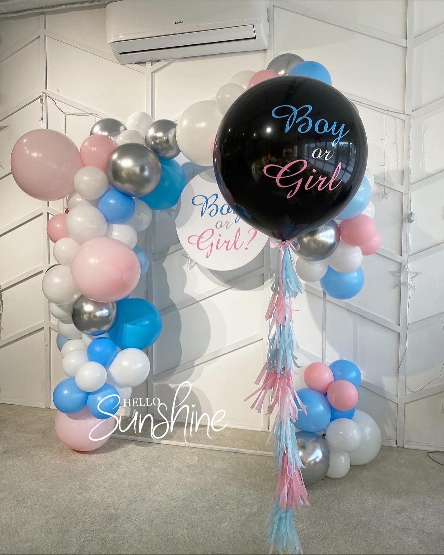Черный гендерный гигант с тассел бахромой и надписью : мальчик или девочка?