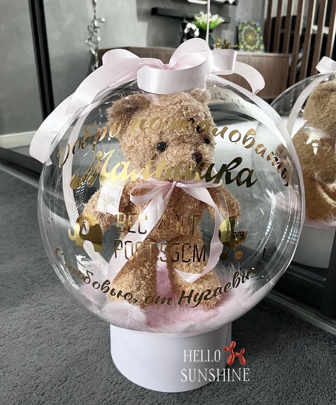 Игрушка в шаре баблс с индивидуальной надписью. Данный вариант на выписку из роддома - с метрикой новорожденного