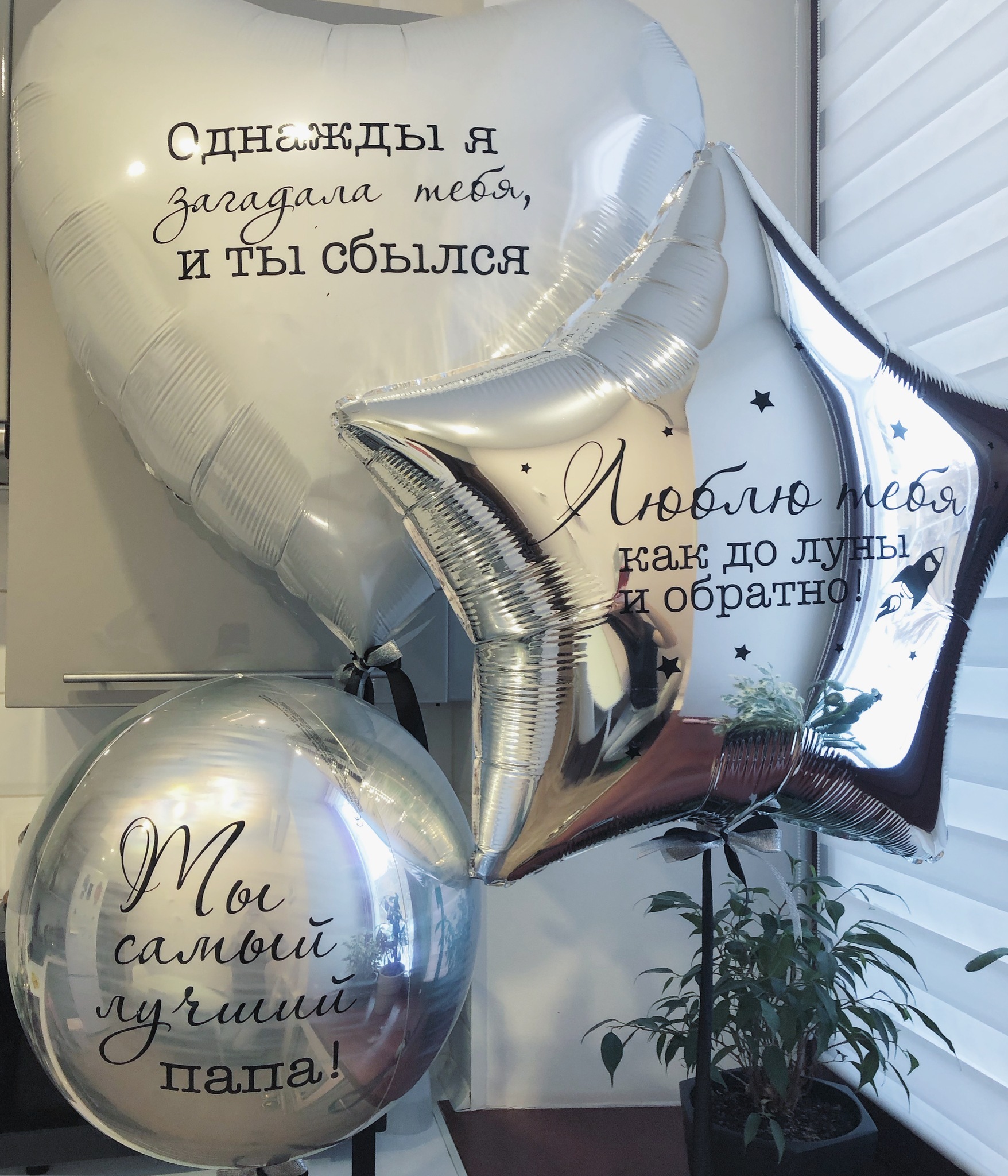 При желании надписи на шарах можно изменить. Просто оставьте комментарий к Вашему заказу!