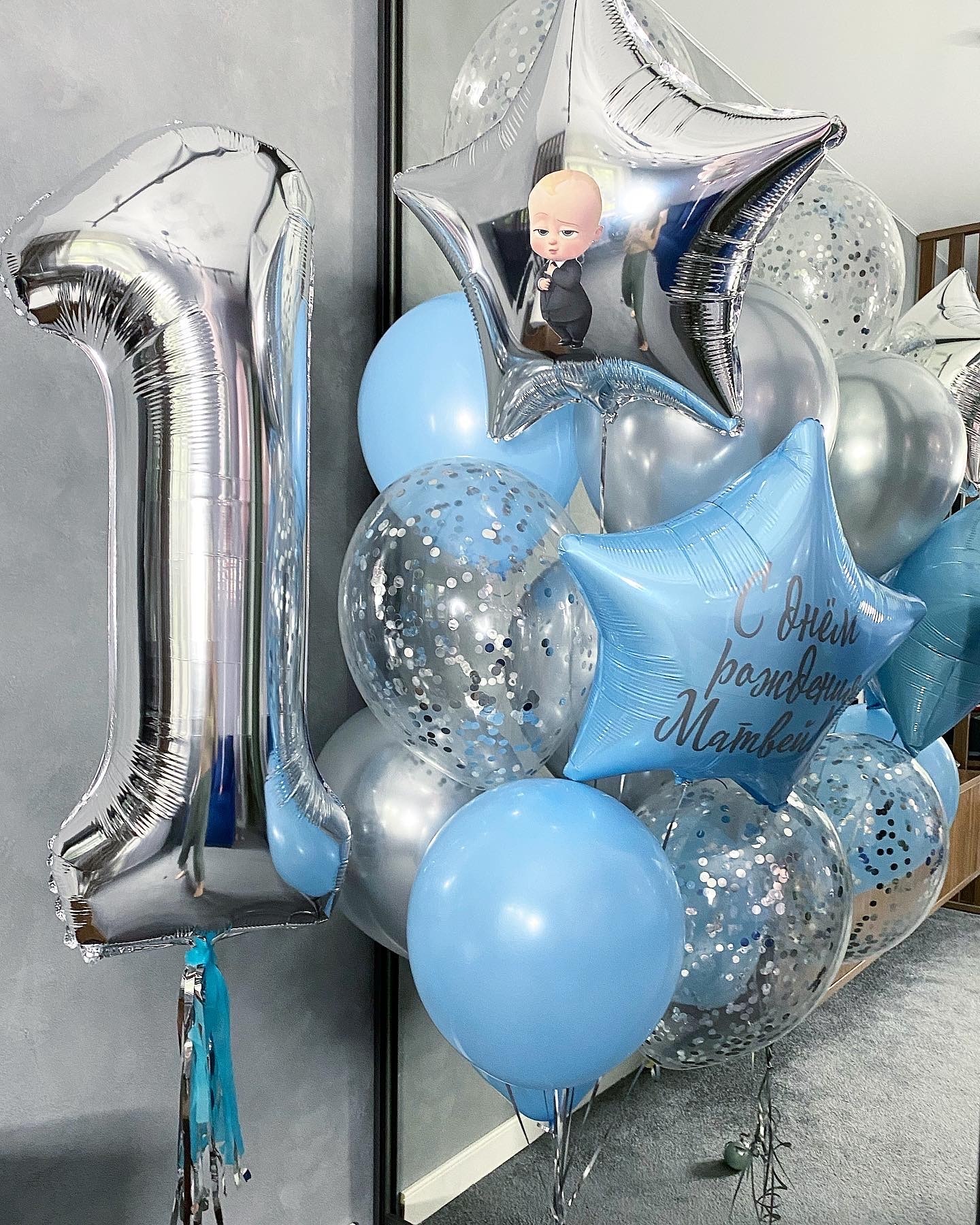 #деньрождения #первыйгодик #цифра #1год #мальчик #сынок #голубой #серебро #размермедиум #звезды