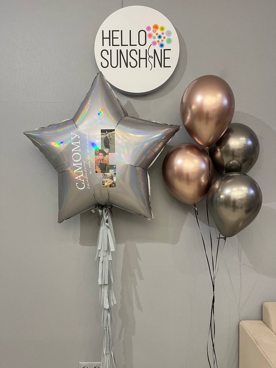 Шар Звезда с индивидуальной надписью, фото и бахромой - 1 шт