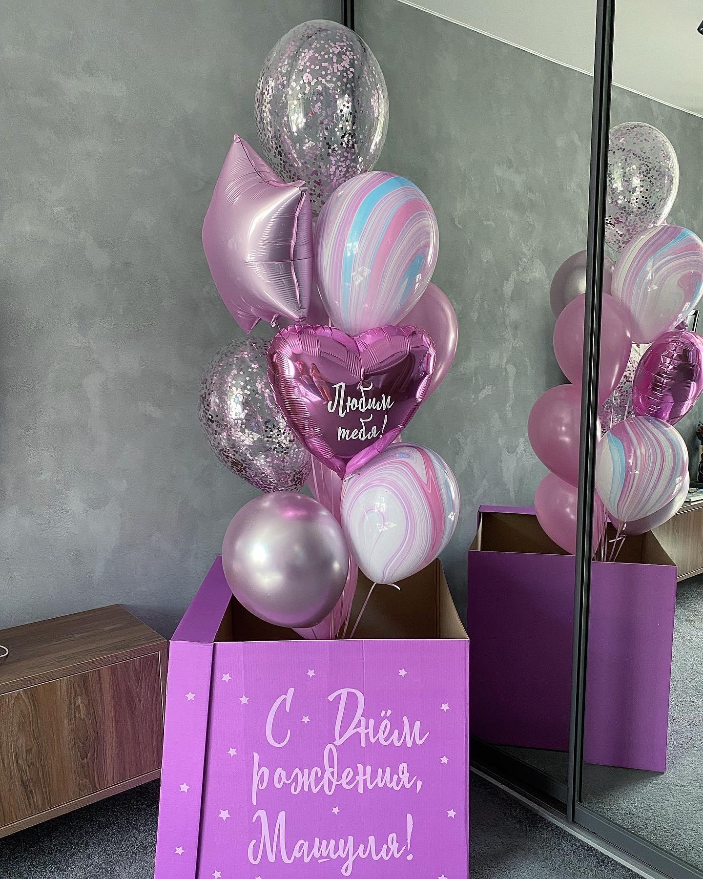 #коробкасюрприз #сиреневый #розовый #мраморныешары #девушке #девочке #подруге #сестре #деньрождения #размермакси