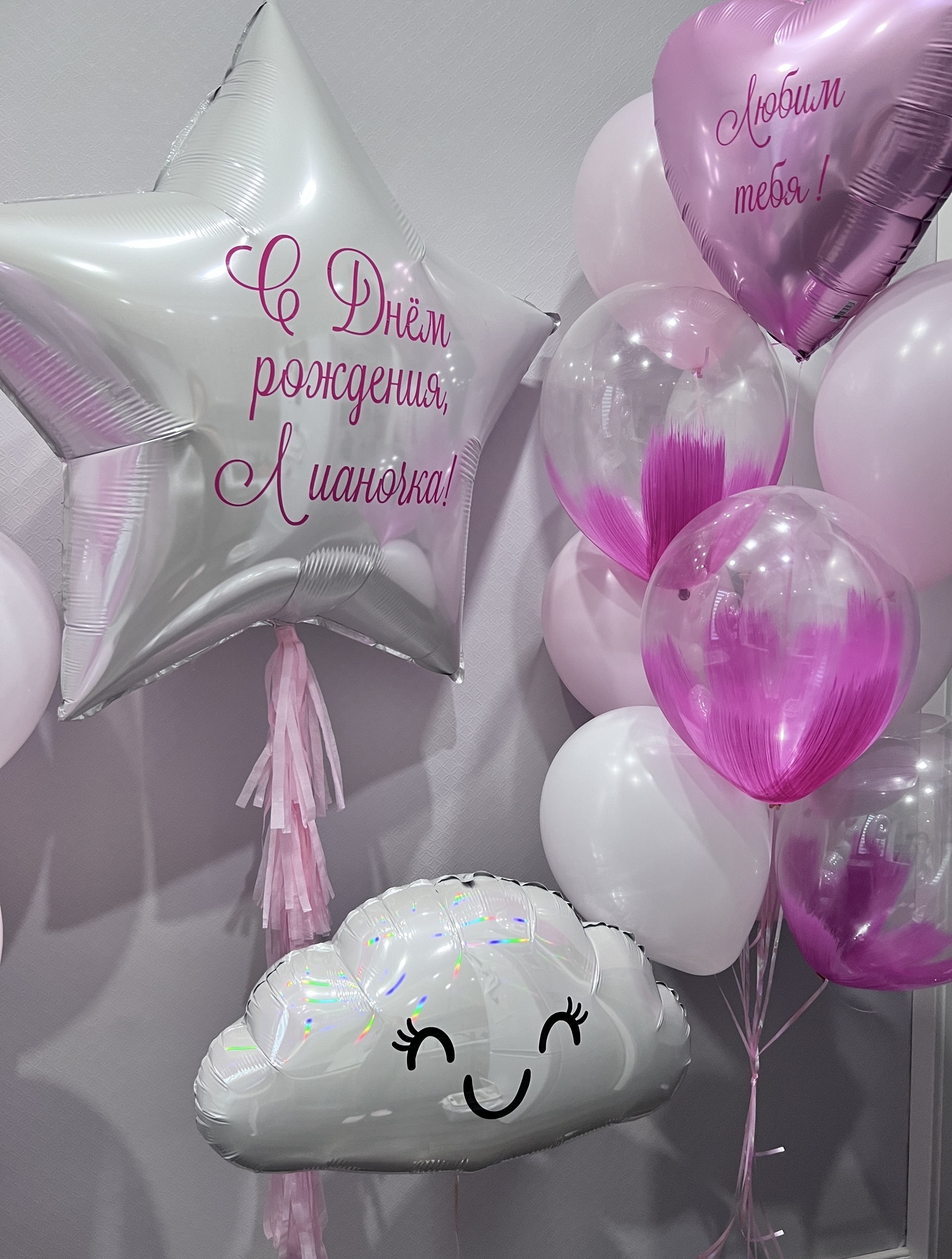 Шар звезда гигант с индивидуальной надписью и бахромой- 1 шт