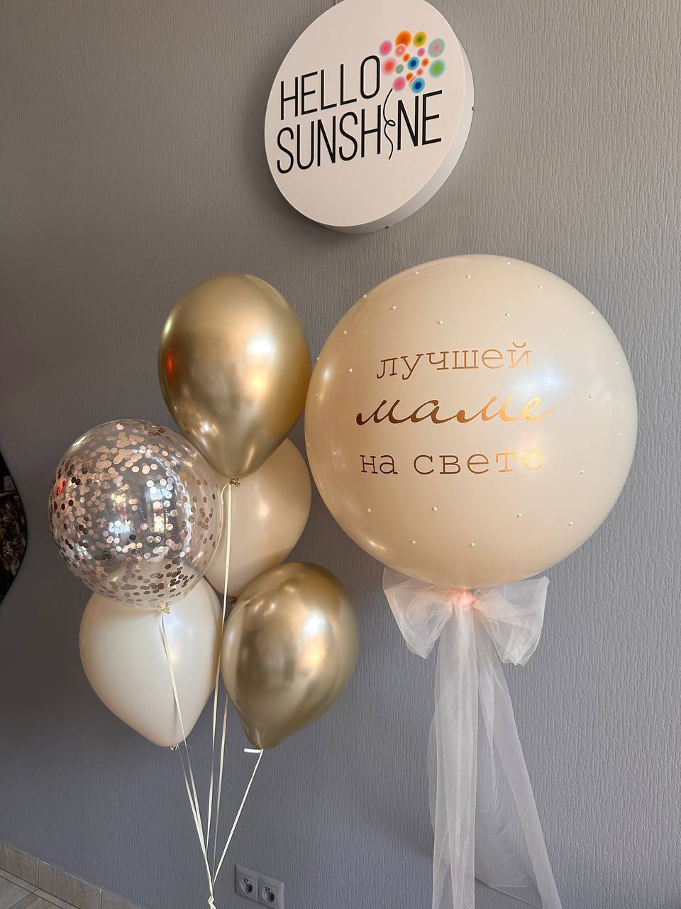 Шар Гигант с индивидуальной надписью, жемчугом и фатиновым бантом - 1 шт