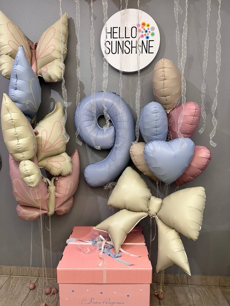 #бабочки #сердечки #розовый #голубой #коробкасюрприз #9лет #деньрождение #девочке #дочке