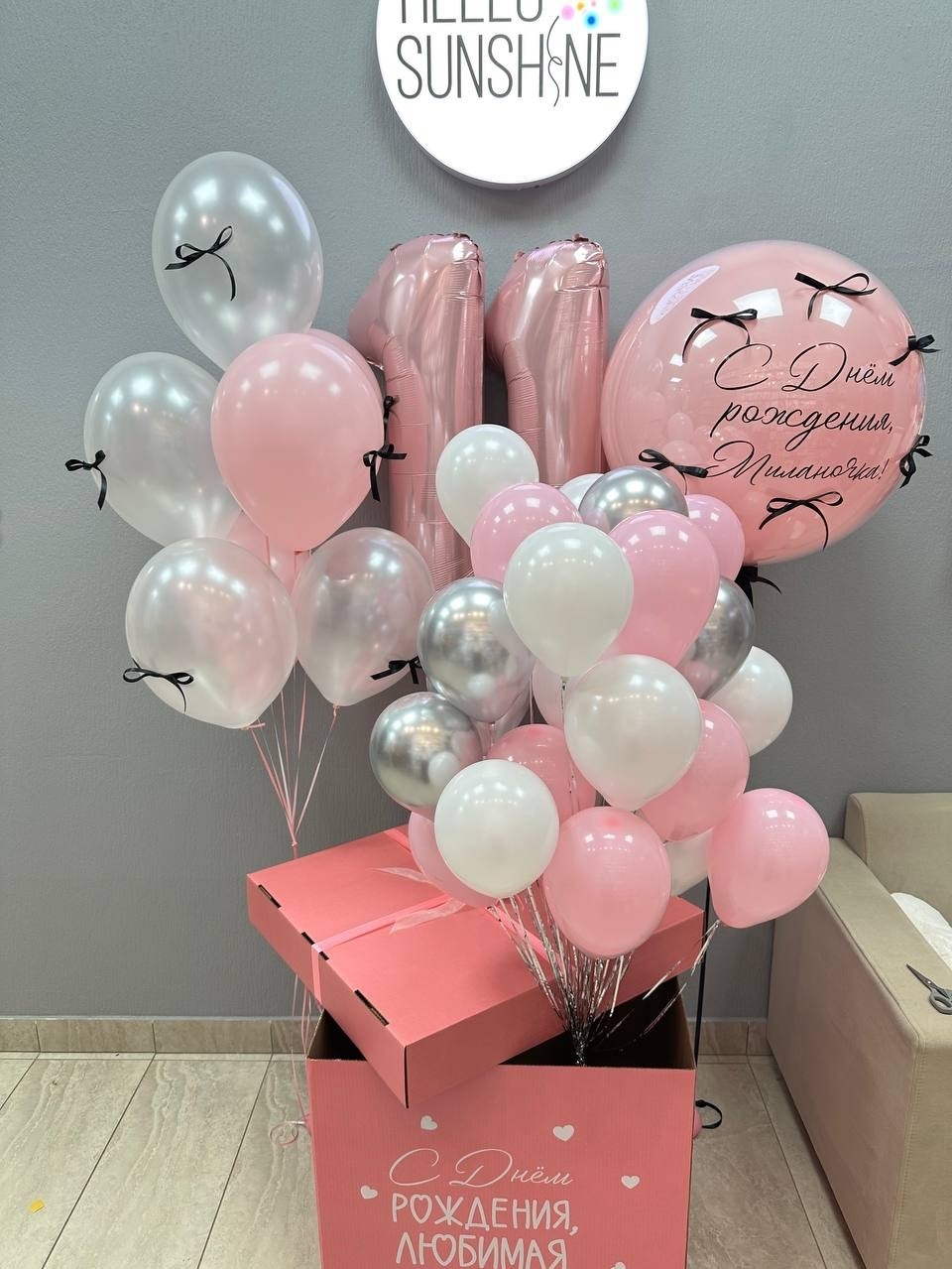 Шар Кристальный гигант с индивидуальной надписью и бантиками - 1 шт