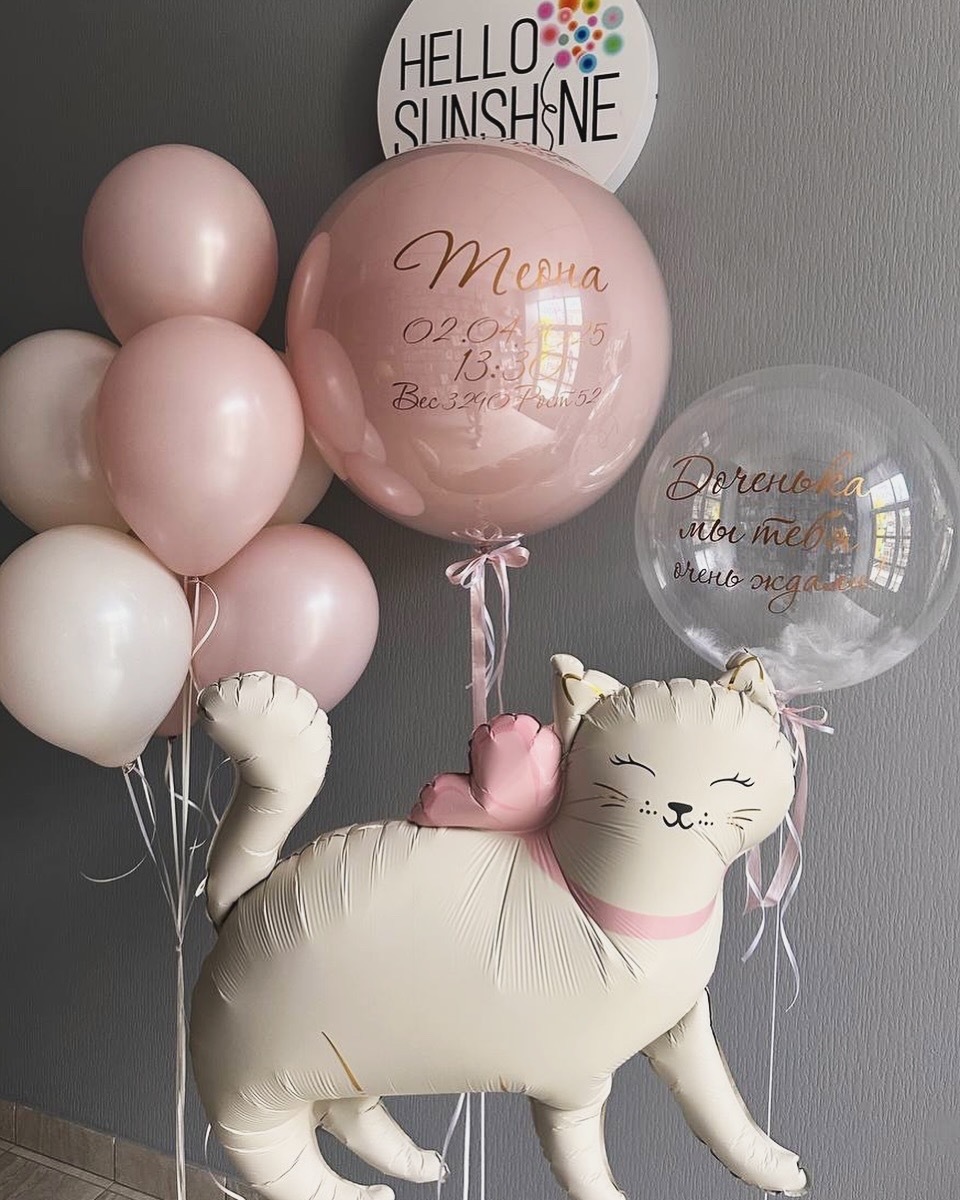 Шары в Уфе, быстрая доставка по городу и пригороду. Набор шаров Пудровый котик – сделать заказ по привлекательной цене 6 000 ₽ | Студия праздника HELLO SUNSHINE. Доставляем счастье!