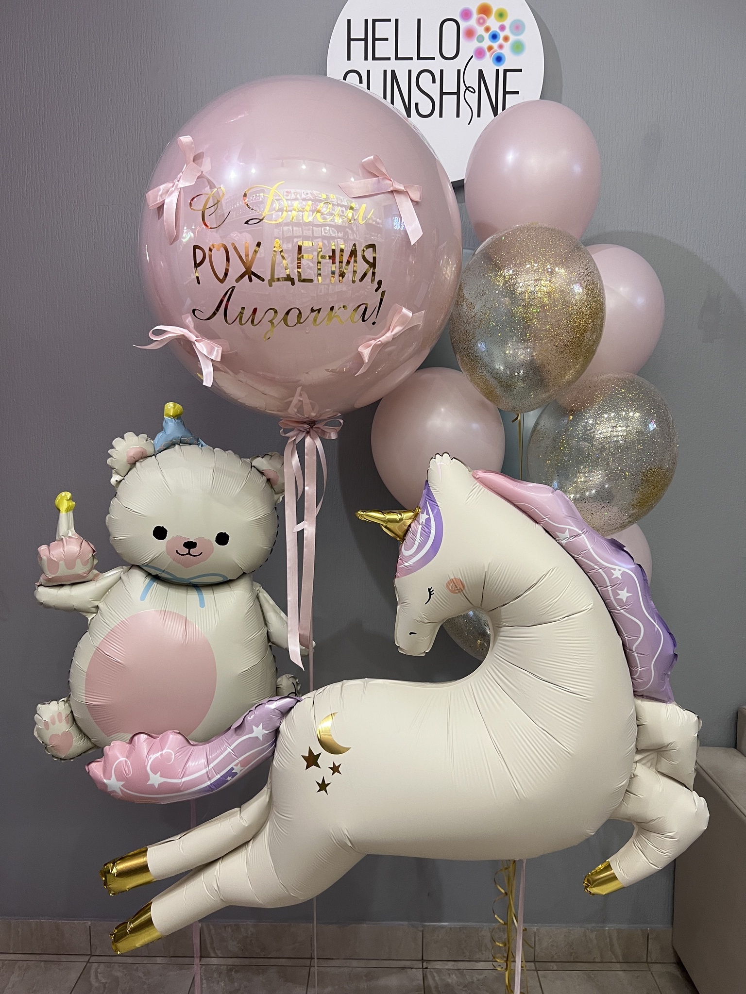 #деньрождения #дочке #девочке #сестренке #единорог #волшебство #розовый #нежный #стильный #мишка #шарыснадписью