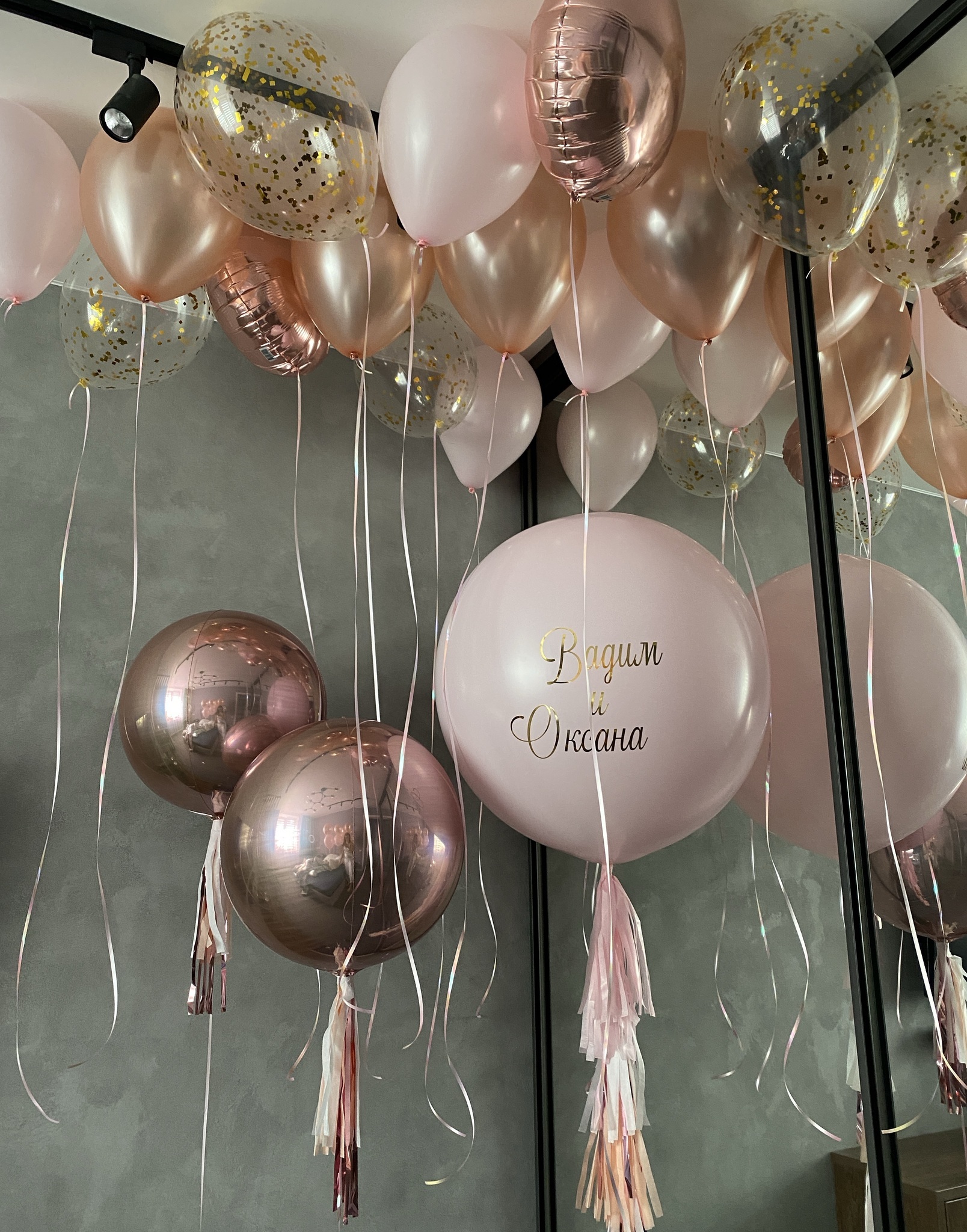 #деньрождение #свадьба #годовщина #3года #сфера #шарыподпотолок #праздник #персик #розовый