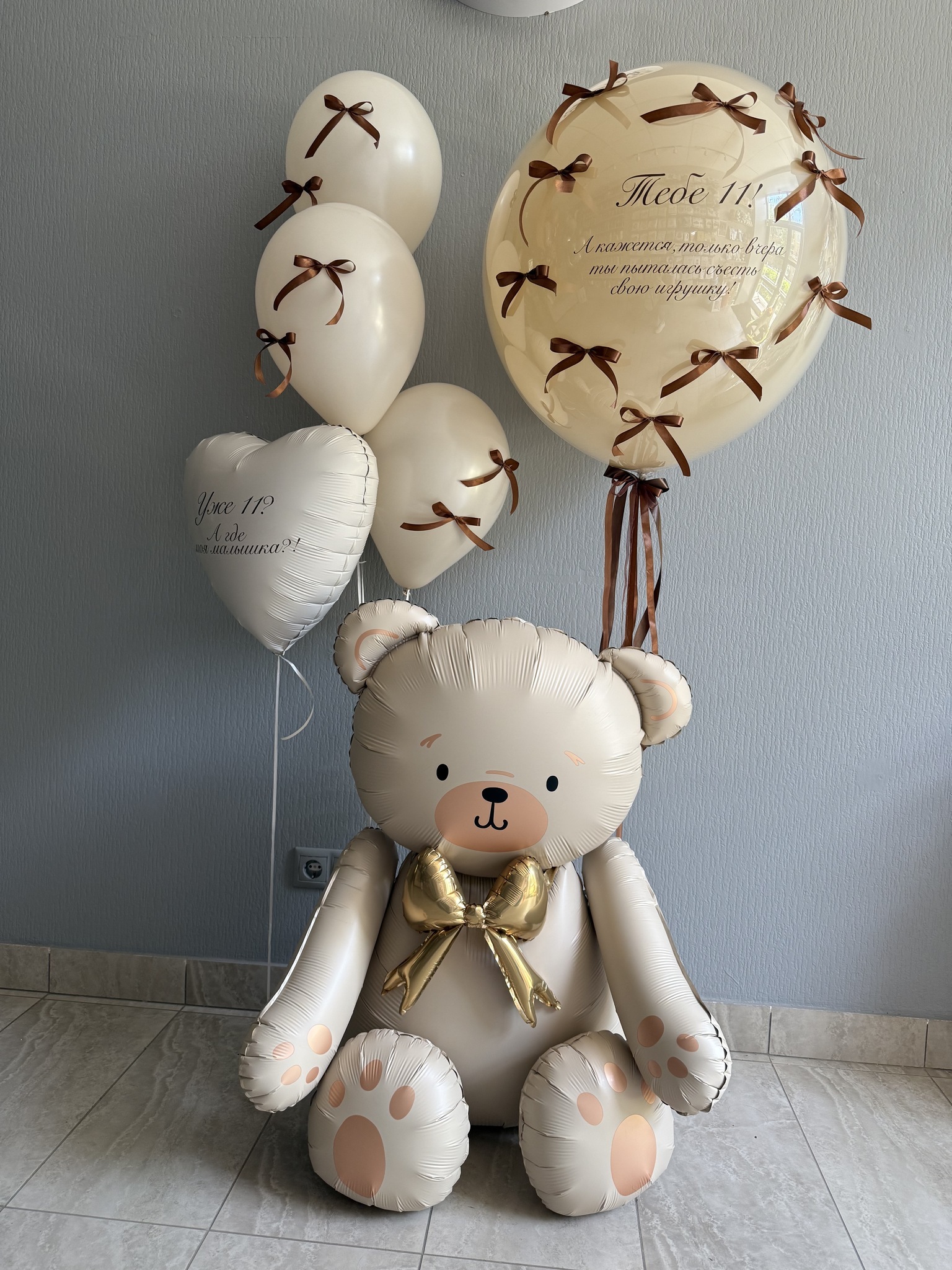 #деньрождения #дочке #девочке #сестренке #коричневый #волшебство #бежевый #нежный #стильный #мишка #шарыснадписью