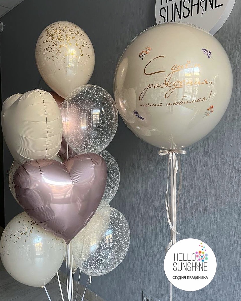Шар гигант кристальный с индивидуальной надписью и цветами - 1 шт