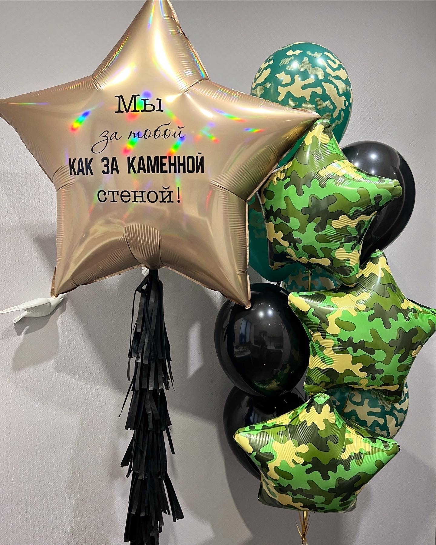 Звезда гигант с индивидуальной надписью и бахромой под шаром - 1 штт