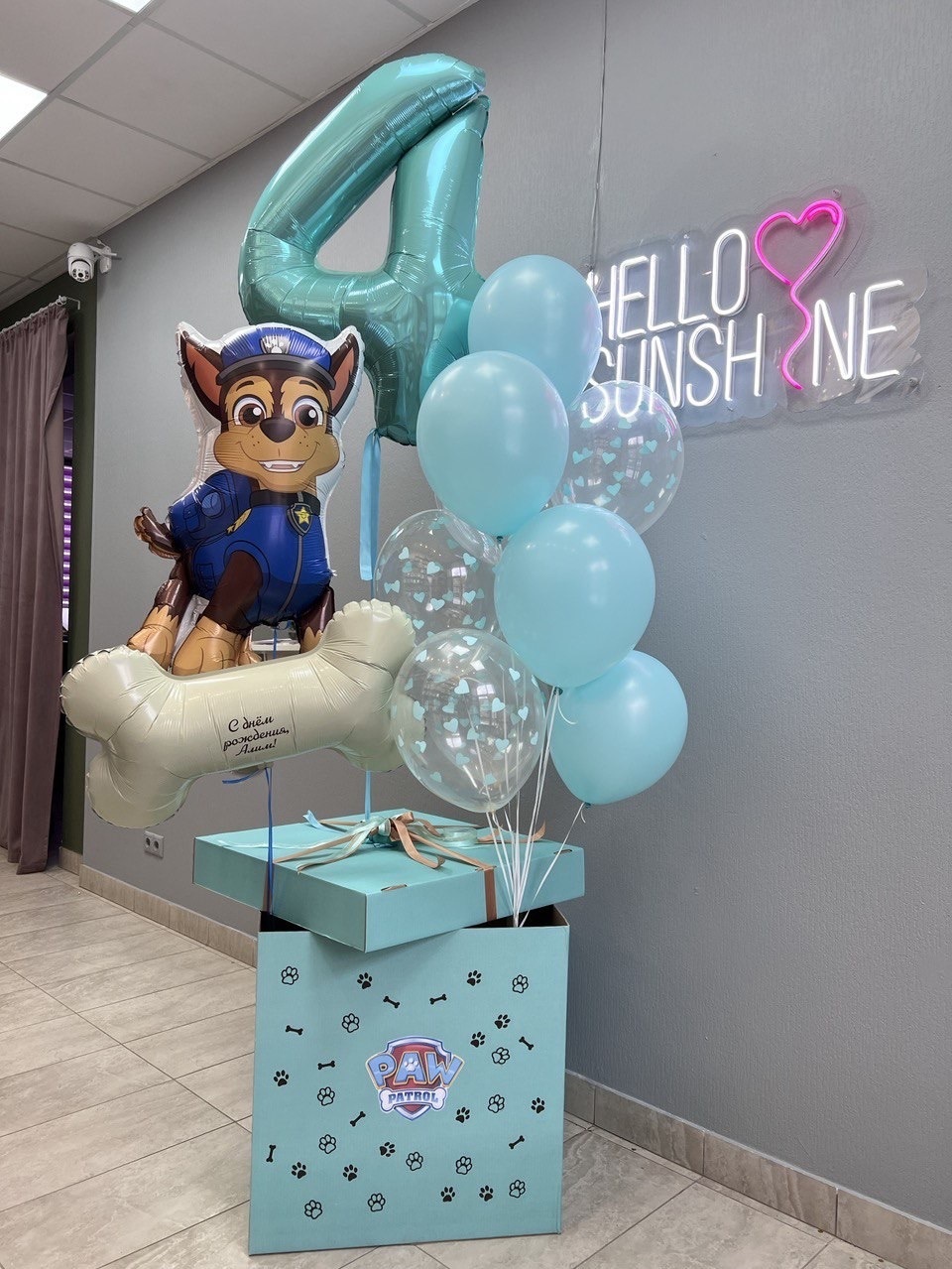 #деньрождение #мальчику #сыну #3года #собачка #щенячийпатруль #Дисней #синий #голубой #небесный #персонажи #коробка