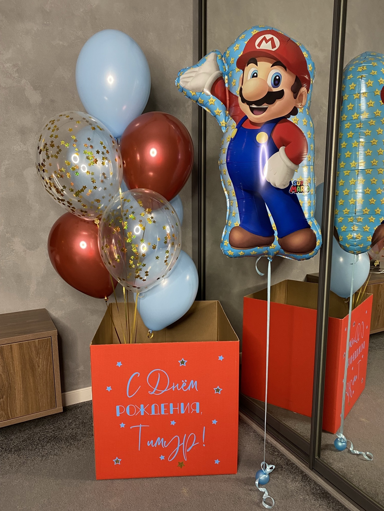 #деньрождение #мальчику #сыну #3года #супермарио #герои #Дисней #синий #голубой #небесный #персонажи #коробка