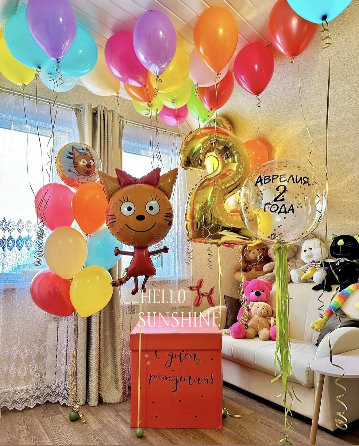#деньрождения #девочке #3кота #шарбаблс #цифра #яркие #цветные #сочные #шарыподпотолок #коробкасюрприз