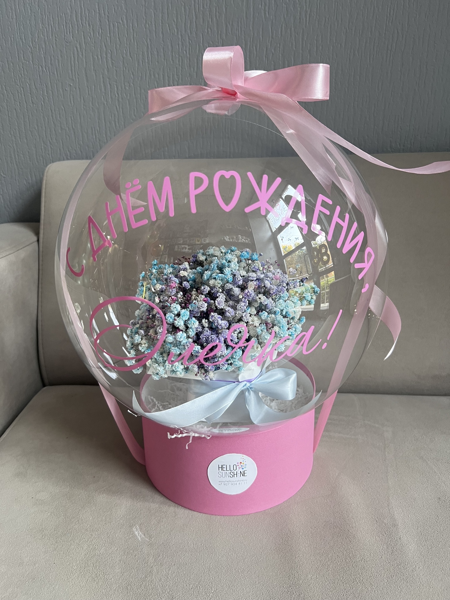 Цветы в шаре с индивидуальной надписью - 1 шт