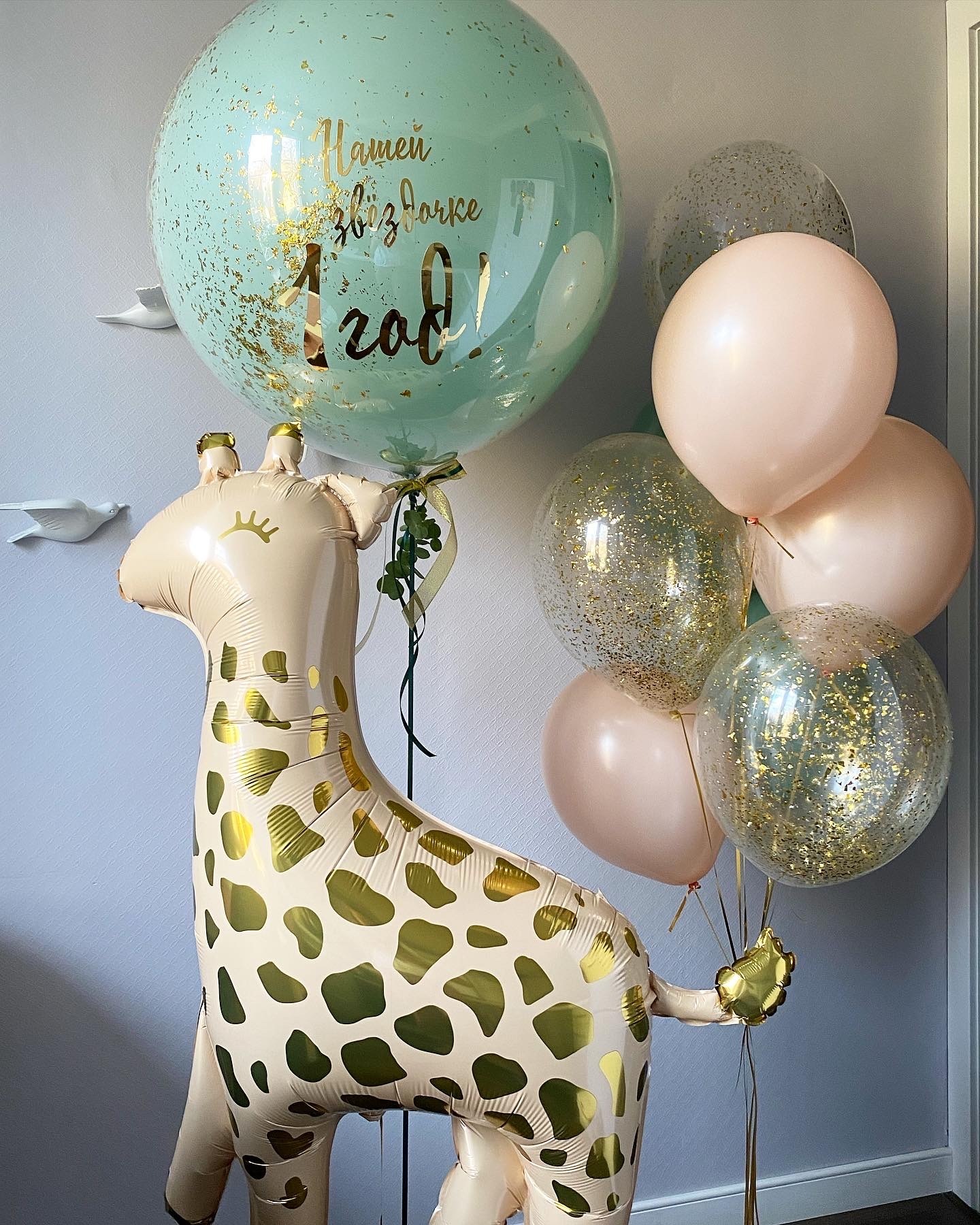 #жираф #розовый #дочке #девочке #сыну #деньрождения #1год #мальчик #размермедиум #первыйгодик #эвкалипт #золото