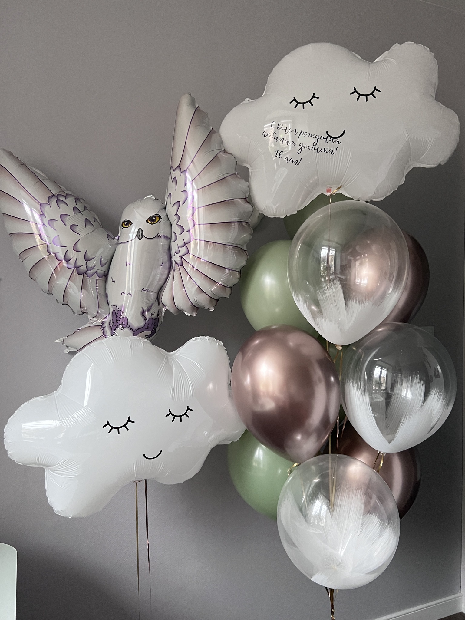 #деньрождения #девушка #девочка #подруга #маме #бежевый #зеленый #нежный #сова #облако